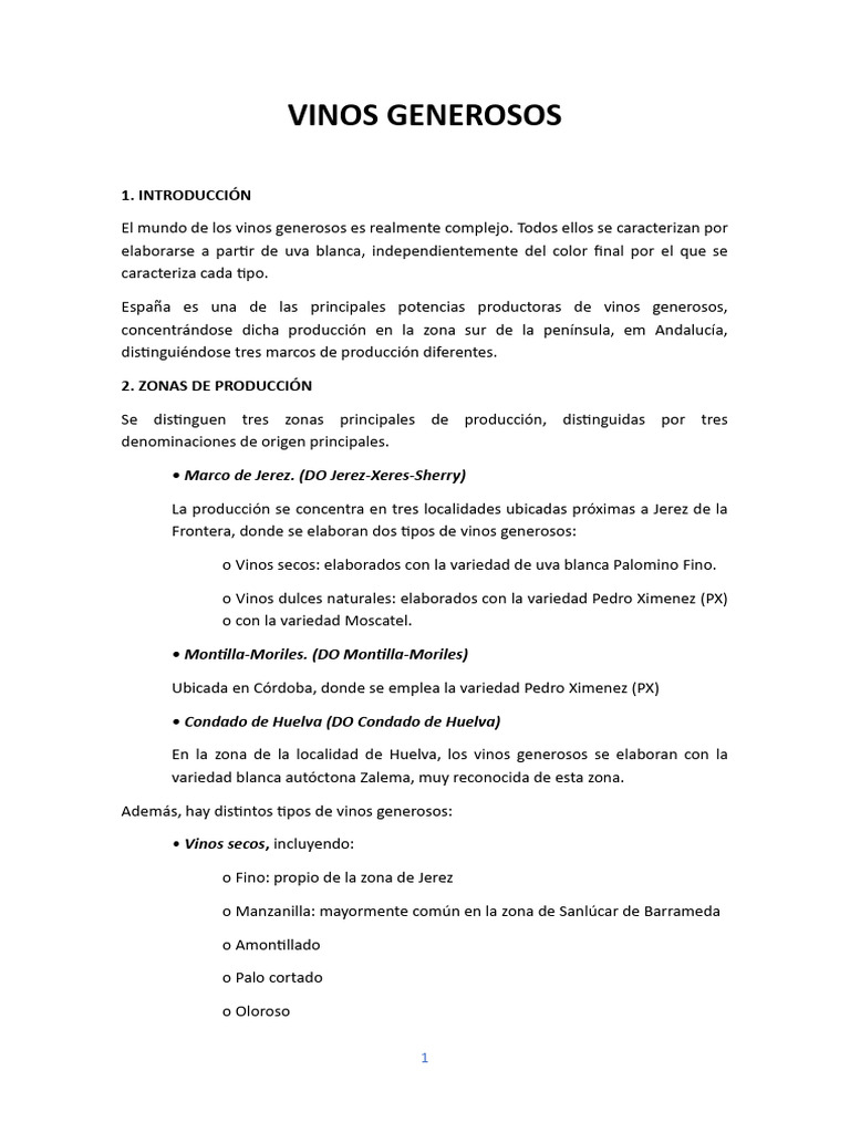 Además, hay distintos tipos de vinos generosos: