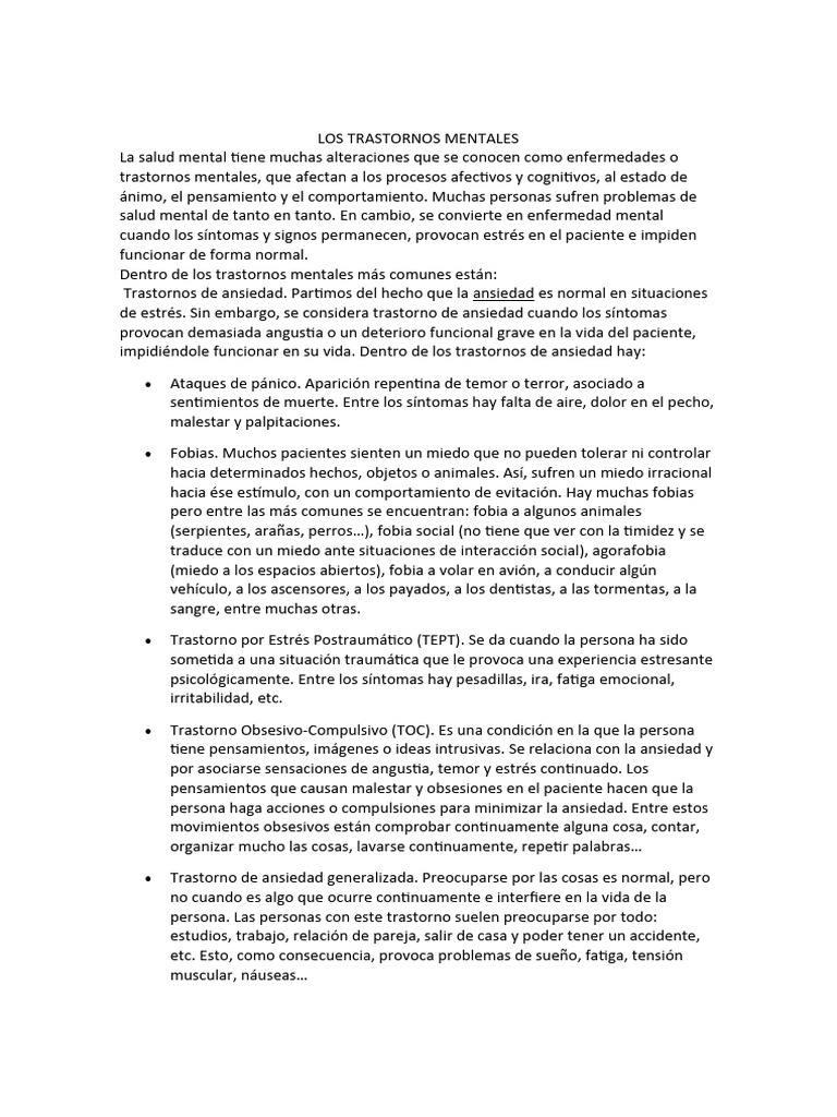 LOS TRASTORNOS MENTALES