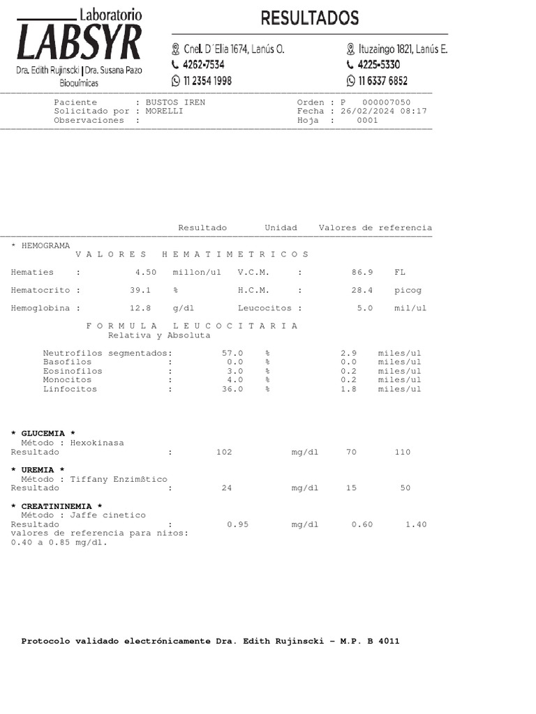 Protocolo validado electrónicamente Dra. Edith Rujinscki - M.P. B 4011