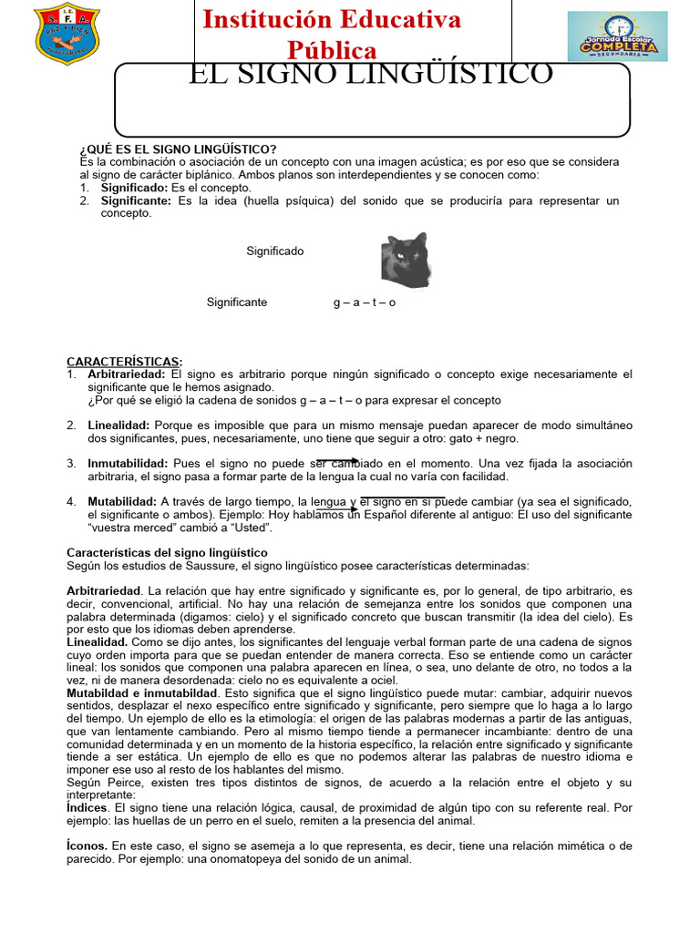 Según los estudios de Saussure, el signo lingüístico posee características determinadas: