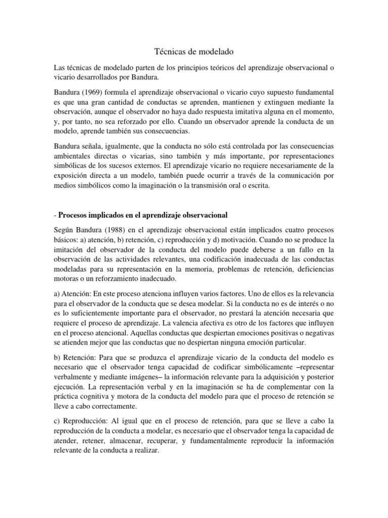 Las técnicas de modelado parten de los principios teóricos del aprendizaje observacional o