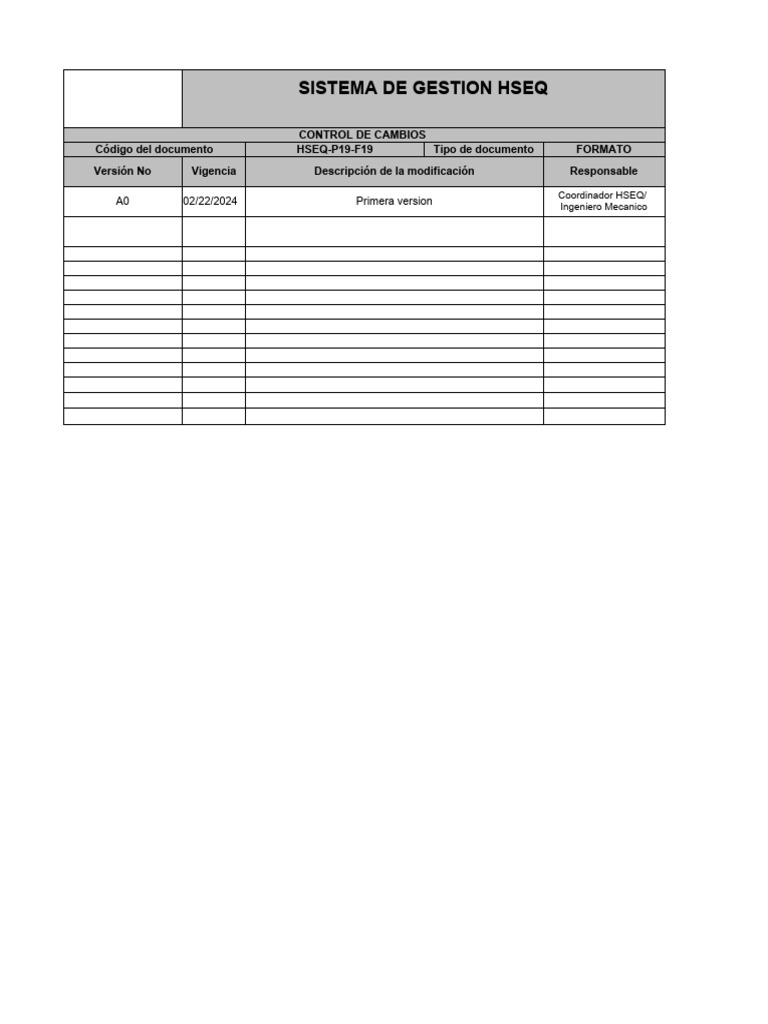 Código del documento HSEQ-P19-F19 Tipo de documento FORMATO