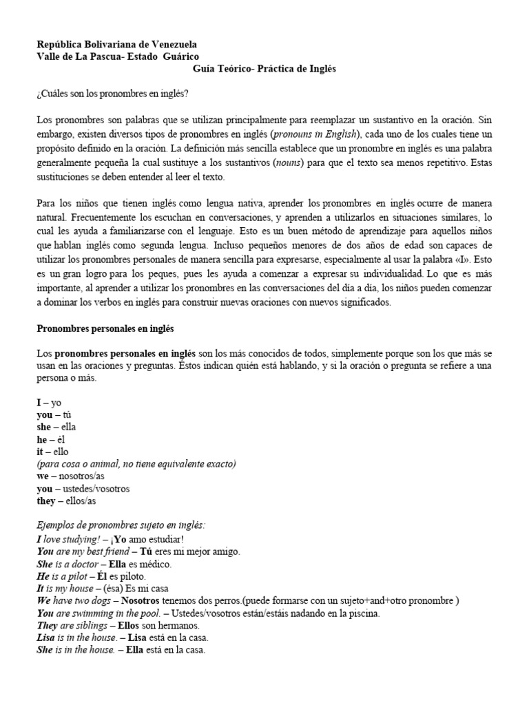 propósito definido en la oración. La definición más sencilla establece que un pronombre en inglés es una palabra