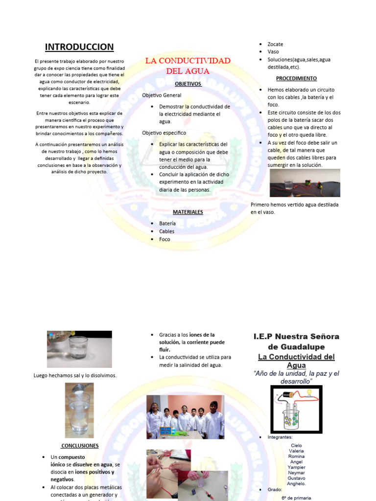 conclusiones en base a la observación y conducción del agua. sumergir en la solución.