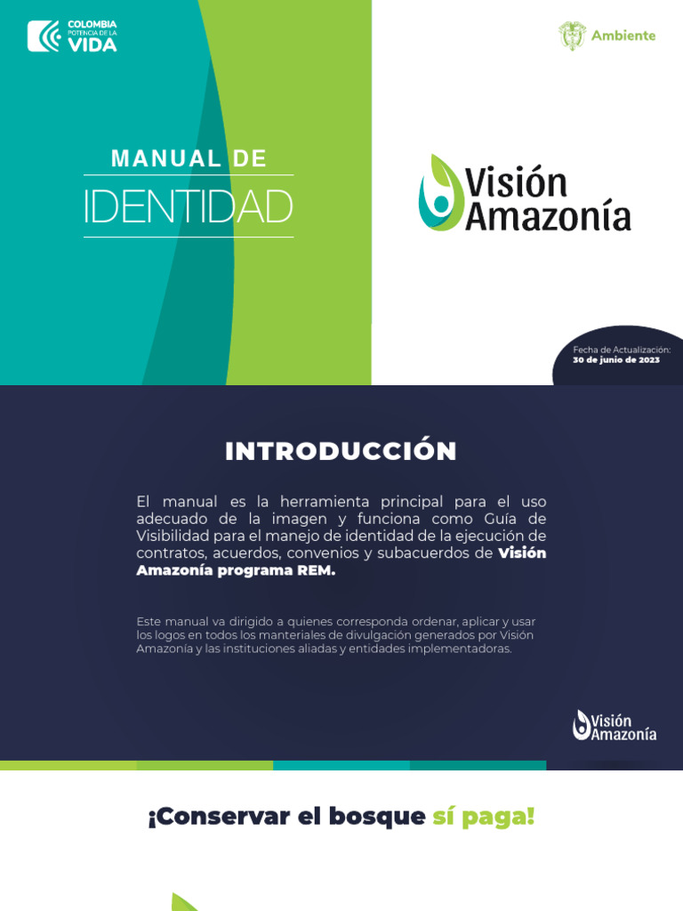Se consideran colores principales para la aplicación de la identidad de Visión Amazonía el verde