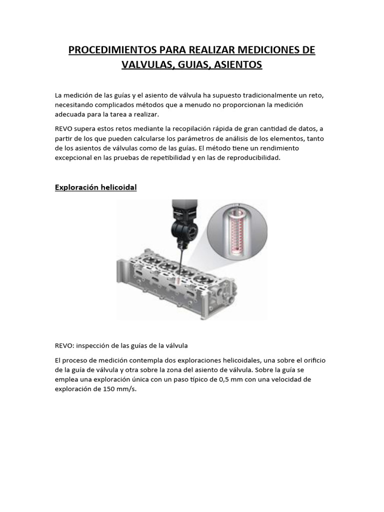 Exploración del asiento de la válvula y el vástago en REVO
