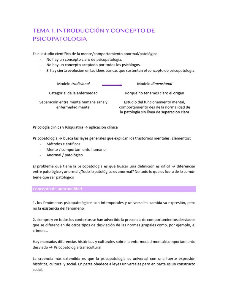 - Si hay cierta evolución en las idees básicas que sustentan el concepto de psicopatología.