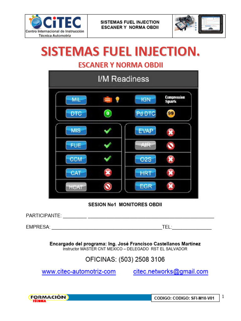 • Identificar en un escáner bajo norma OBDII los diferentes monitores que el vehículo en análisis