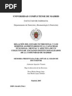 Adulto mayor; Nutrition/ Nutricion; Nutritional requerement of the elderly/ requerimiento