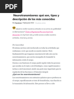 fisiológicos y comportamentales. Algunos de los neurotransmisores más conocidos incluyen la dopamina, la