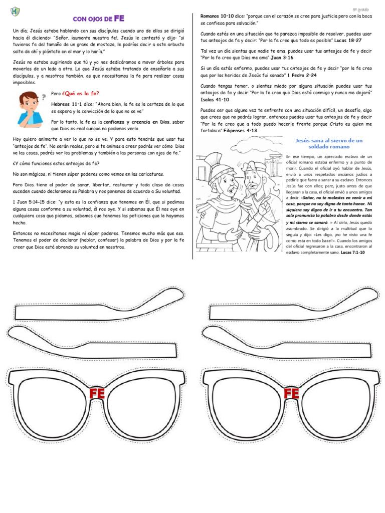 moverlos de un lado a otro. Lo que Jesús estaba tratando de enseñarle a sus Si un día estás enfermo, puedes usar tus anteojos de fe y decir “por la fe creo