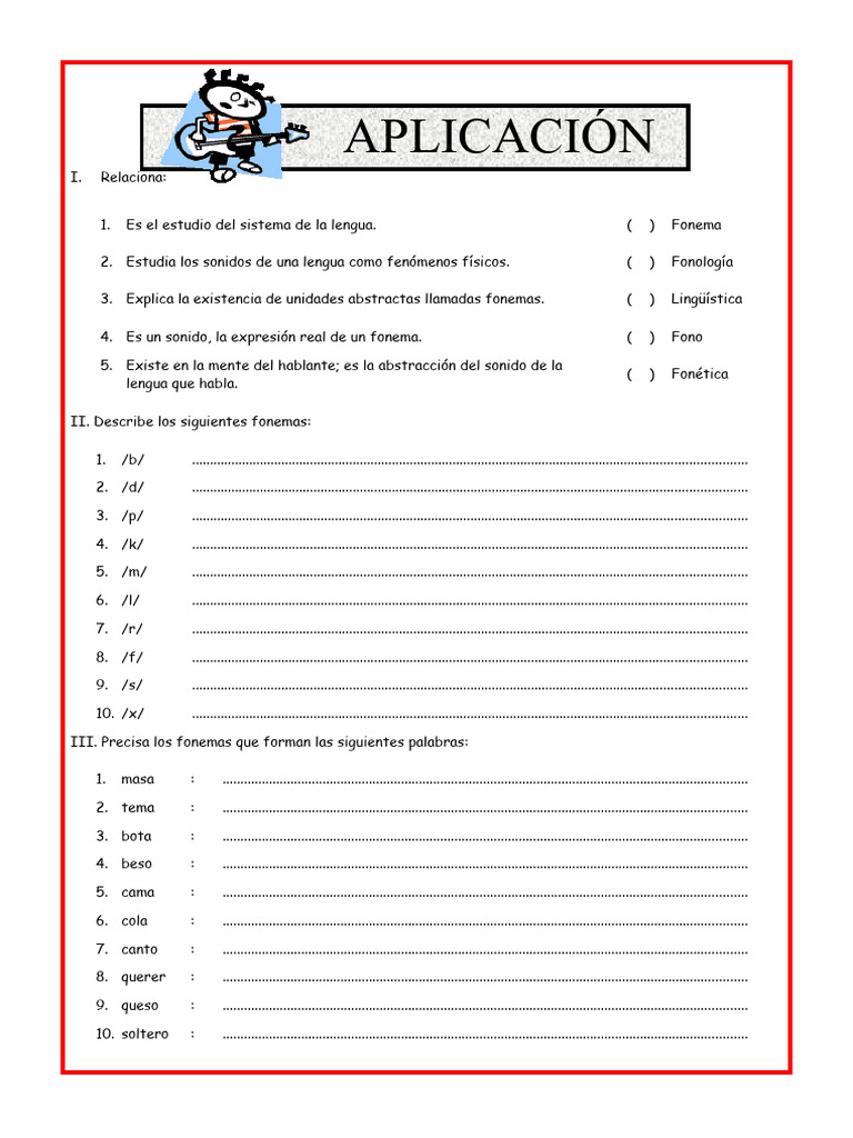 1. Es el estudio del sistema de la lengua. ( ) Fonema