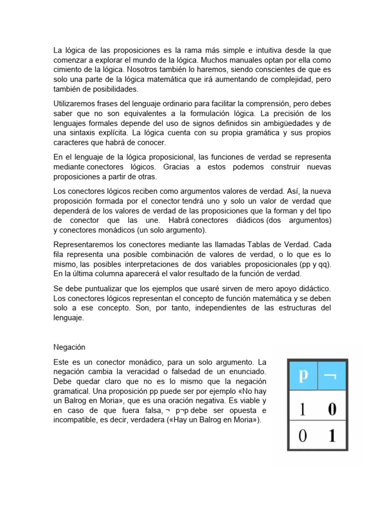 La lógica de las proposiciones es la rama más simple e intuitiva desde la que