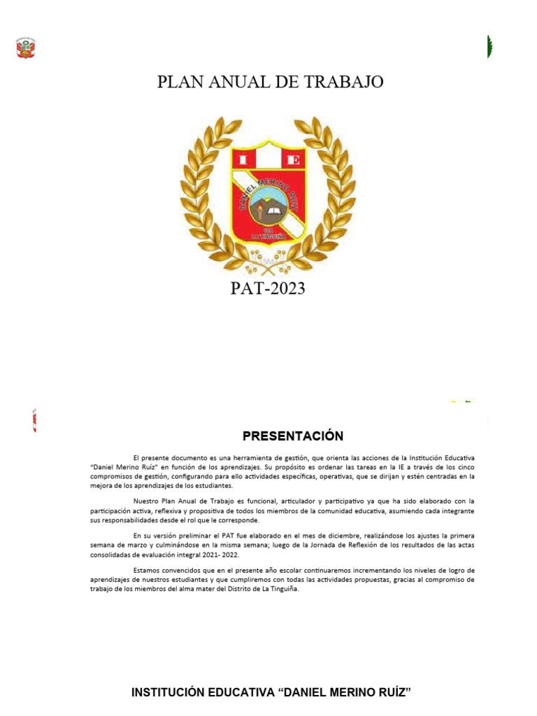 “Daniel Merino Ruíz” en función de los aprendizajes. Su propósito es ordenar las tareas en la IE a través de los cinco