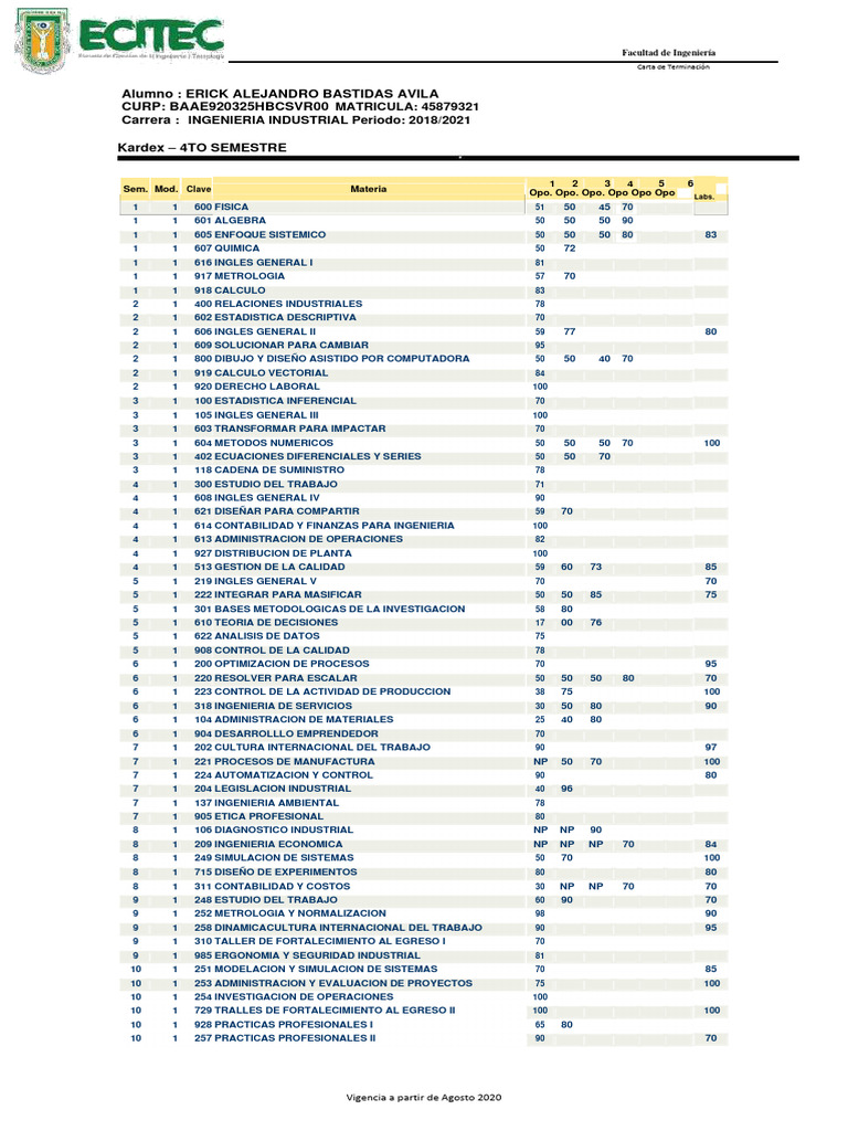 Kardex – 4TO SEMESTRE
