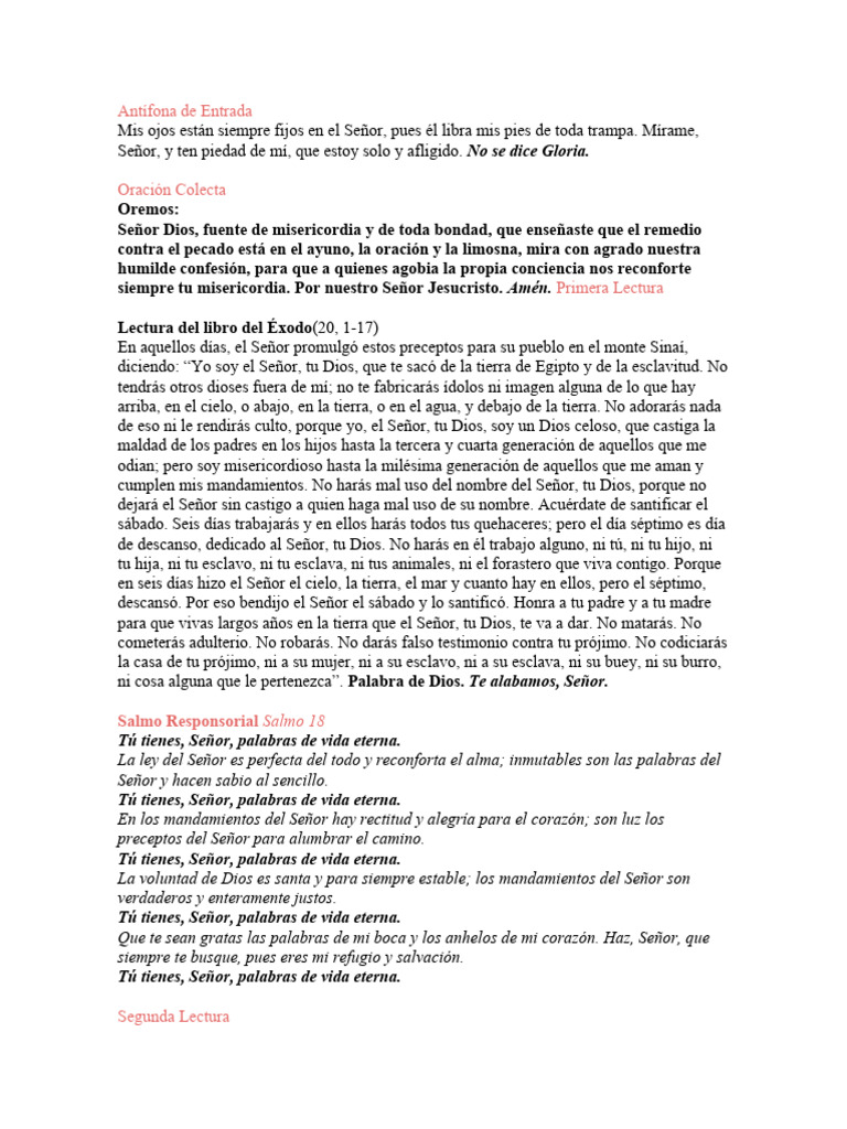 siempre tu misericordia. Por nuestro Señor Jesucristo. Amén. Primera Lectura