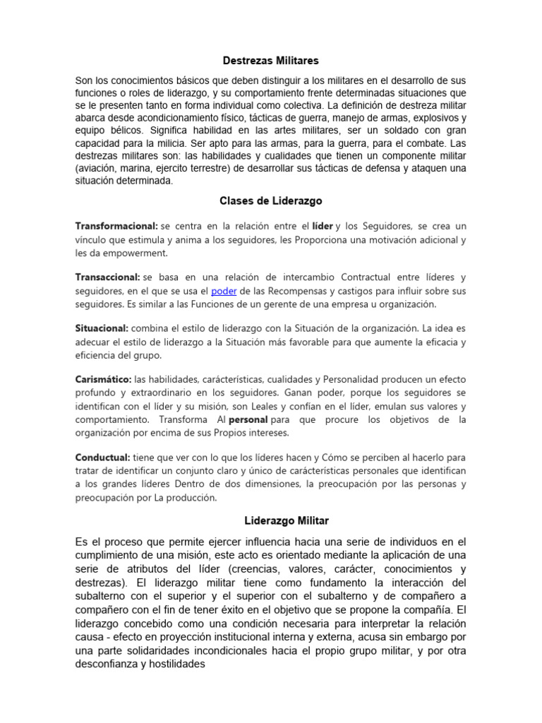 destrezas). El liderazgo militar tiene como fundamento la interacción del