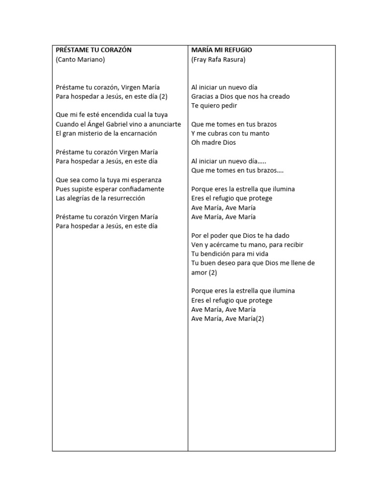 Préstame tu corazón, Virgen María Al iniciar un nuevo día