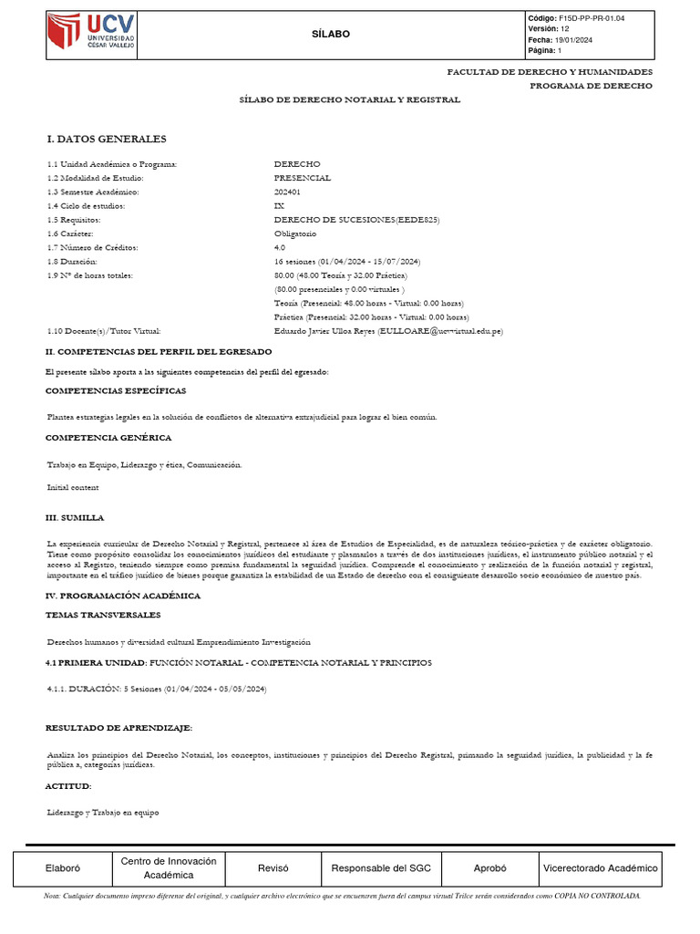 SÍLABO DE DERECHO NOTARIAL Y REGISTRAL