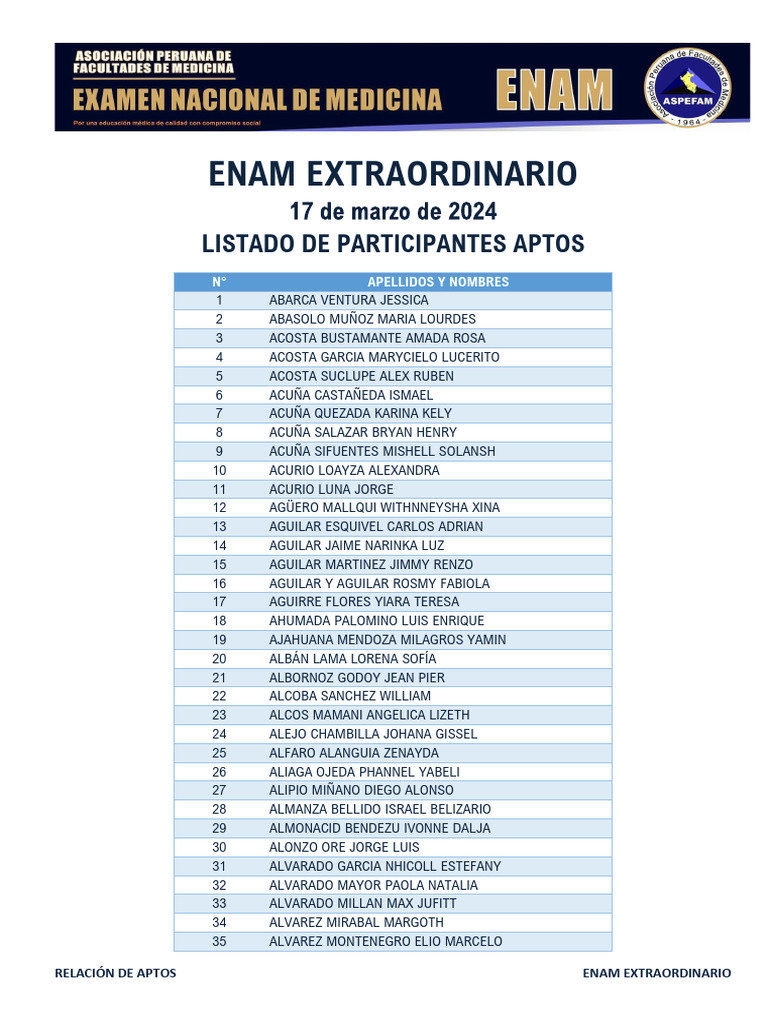 RELACIÓN DE APTOS ENAM EXTRAORDINARIO