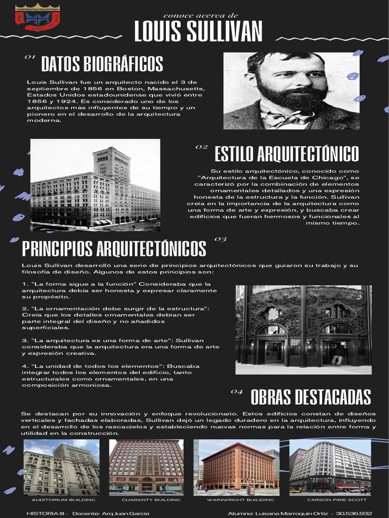 Louis Sullivan desarrolló una serie de principios arquitectónicos que guiaron su trabajo y su
