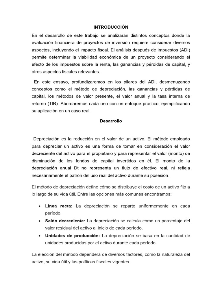 aspectos, incluyendo el impacto fiscal. El análisis después de impuestos (ADI)
