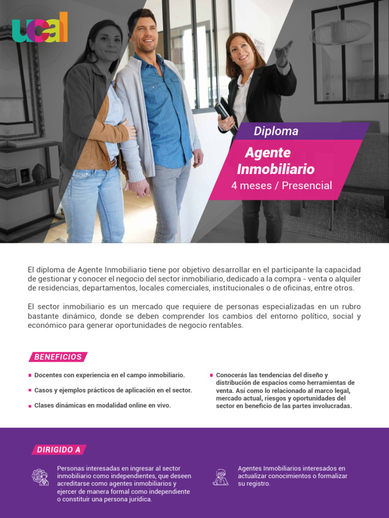 El diploma de Agente Inmobiliario tiene por objetivo desarrollar en el participante la capacidad