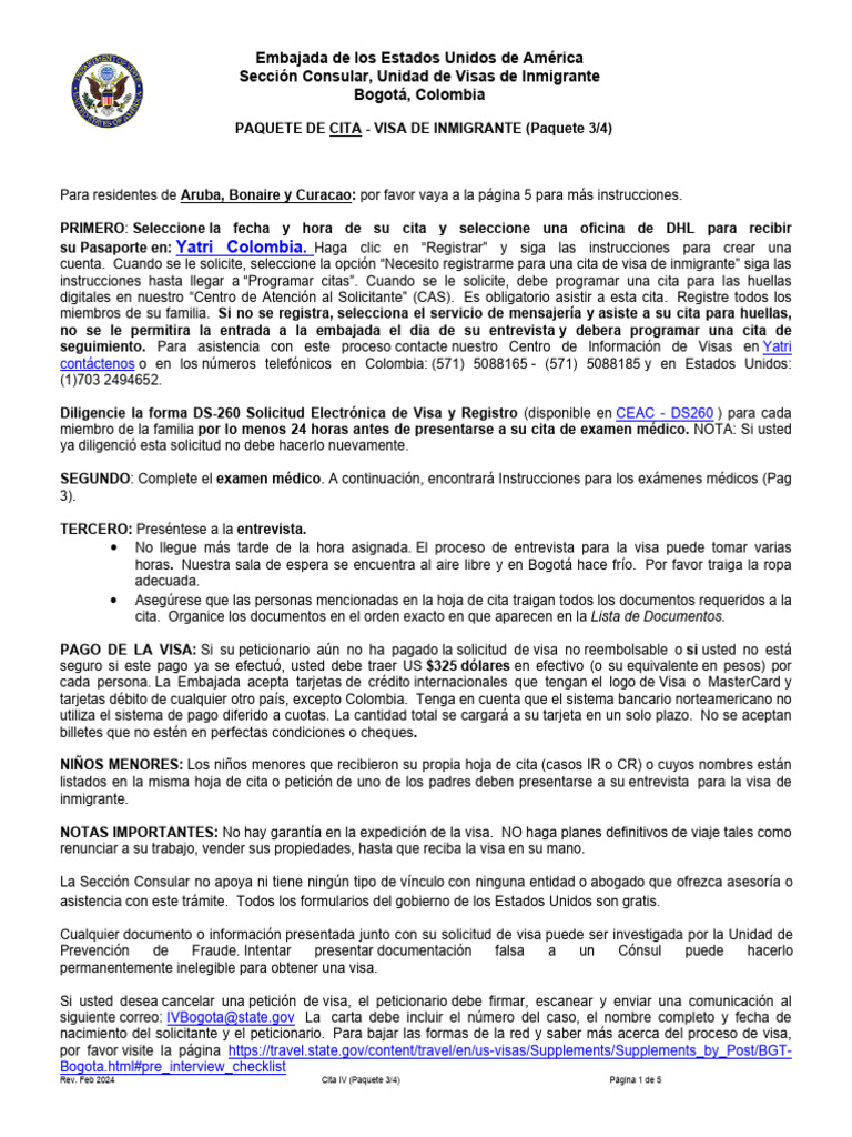 PAQUETE DE CITA - VISA DE INMIGRANTE (Paquete 3/4)