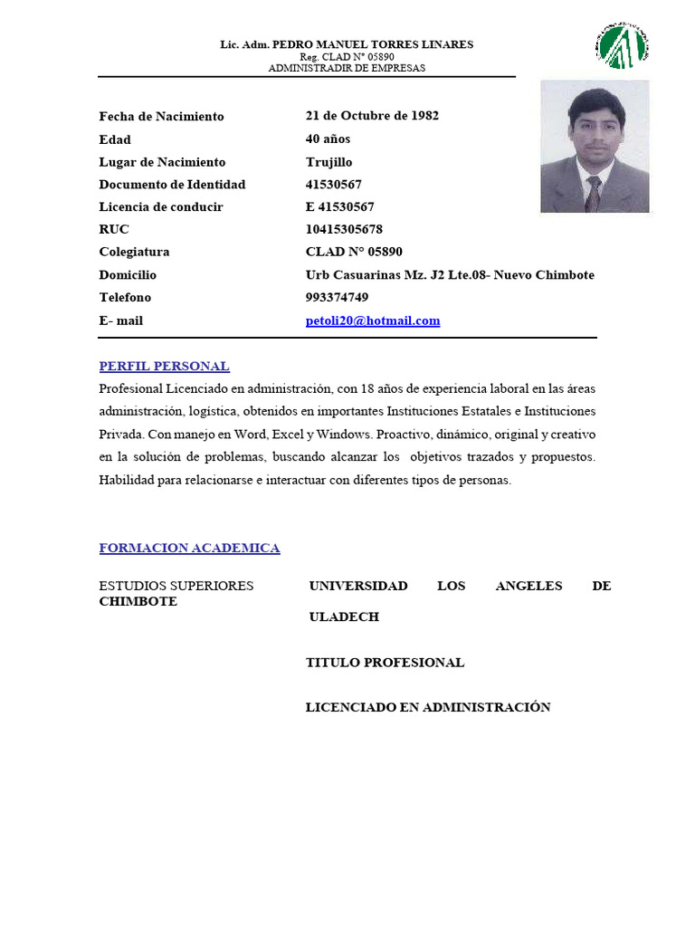 Lic. Adm. PEDRO MANUEL TORRES LINARES