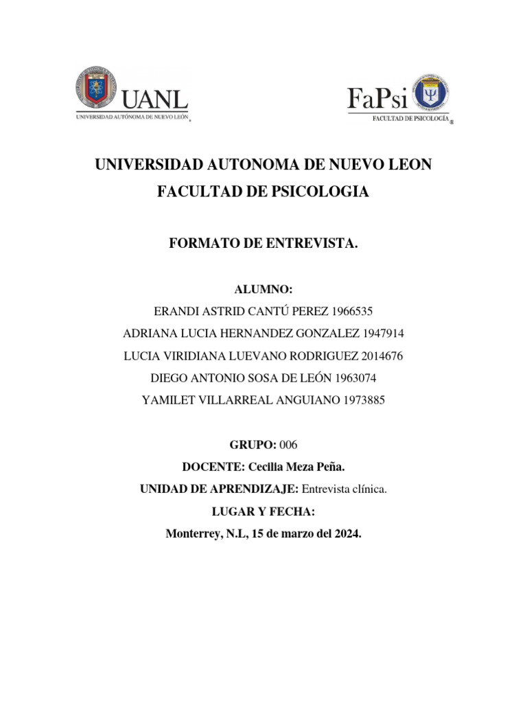 UNIDAD DE APRENDIZAJE: Entrevista clínica.