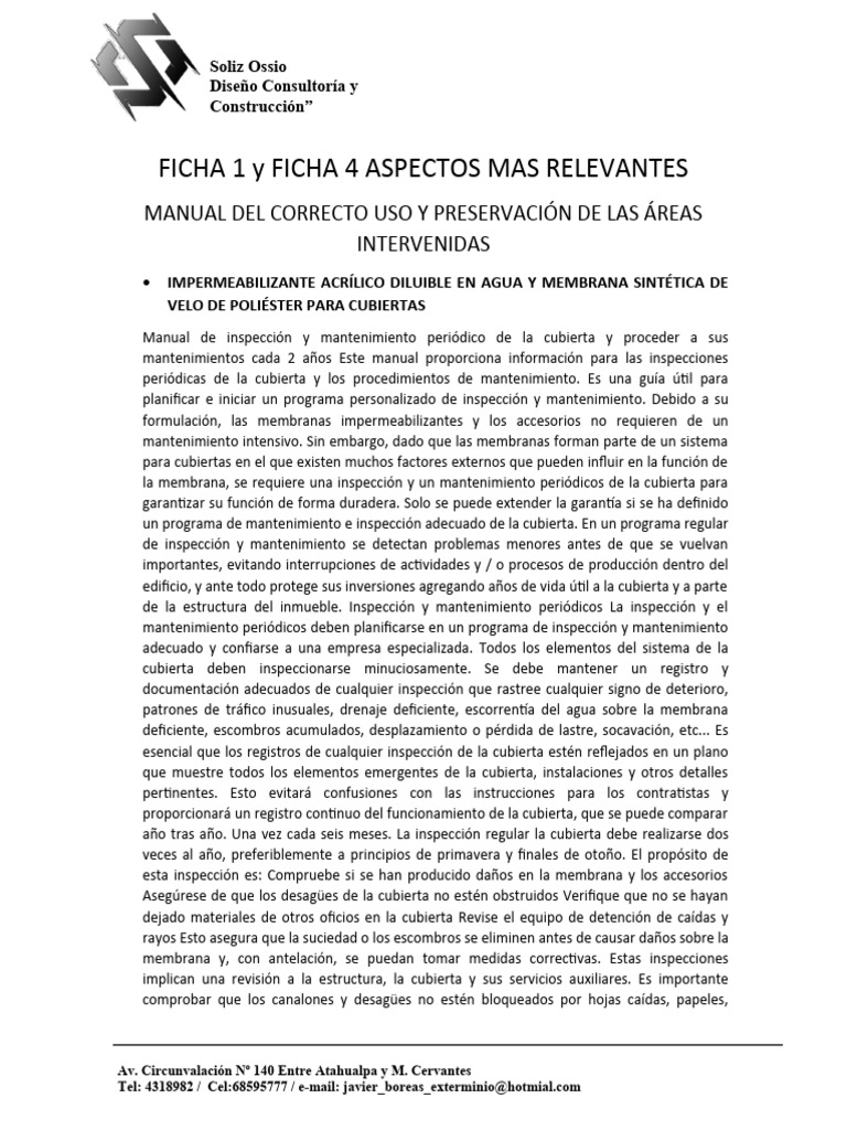 periódicas de la cubierta y los procedimientos de mantenimiento. Es una guía útil para