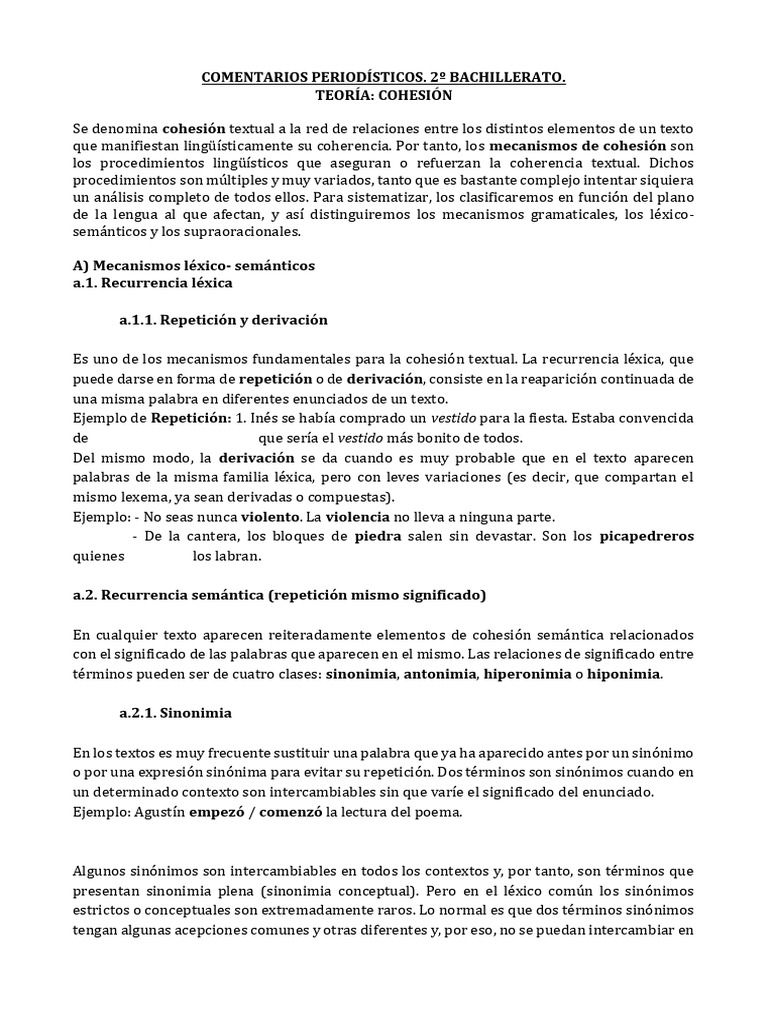 que manifiestan lingüísticamente su coherencia. Por tanto, los mecanismos de cohesión son