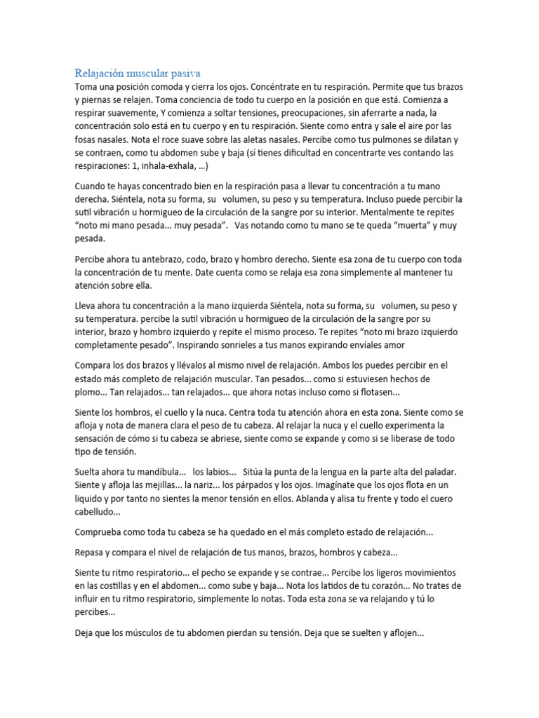 y piernas se relajen. Toma conciencia de todo tu cuerpo en la posición en que está. Comienza a