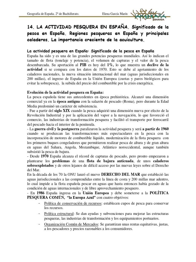 14. LA ACTIVIDAD PESQUERA EN ESPAÑA. Significado de la