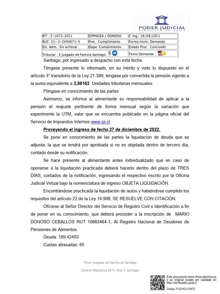 Tribunal : 3 Juzgado de Familia Santiago Texto Demanda :