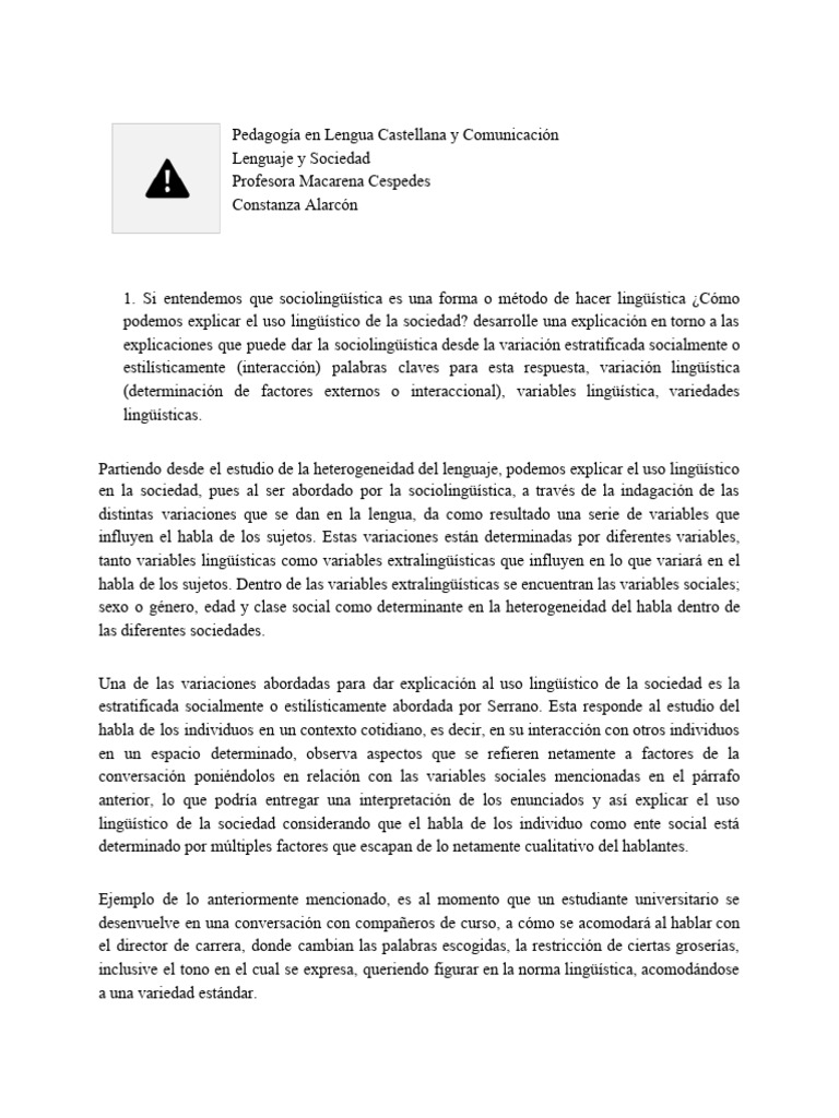 podemos explicar el uso lingüístico de la sociedad? desarrolle una explicación en torno a las