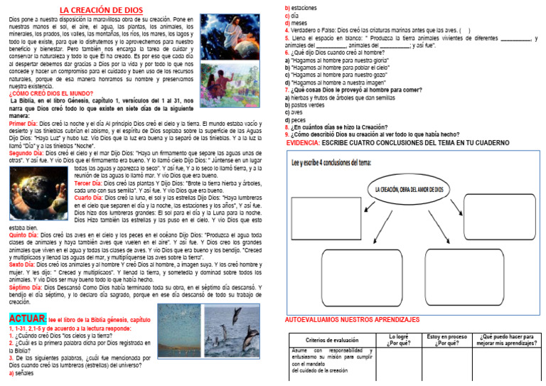 ACTUAR: lee el libro de la Biblia génesis, capítulo AUTOEVALUAMOS NUESTROS APRENDIZAJES