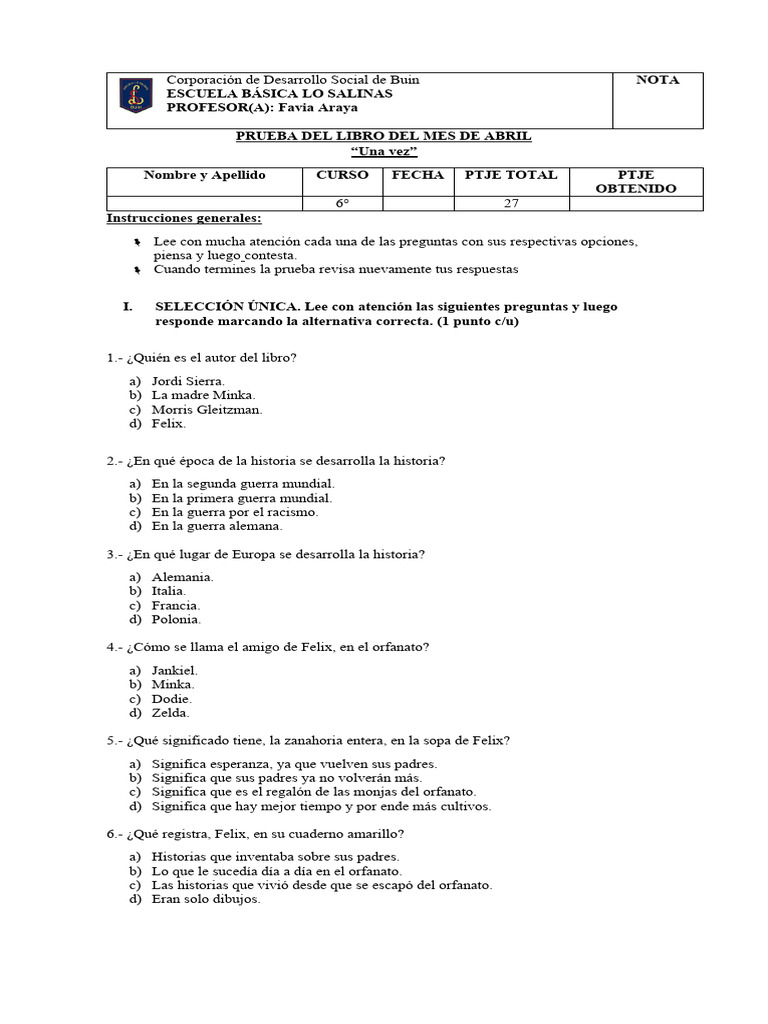 Lee con mucha atención cada una de las preguntas con sus respectivas opciones,