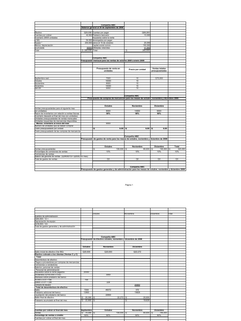 Ventas presupuestadas Q 100,000 Q 80,000 Q 140,000 Q 320,000
