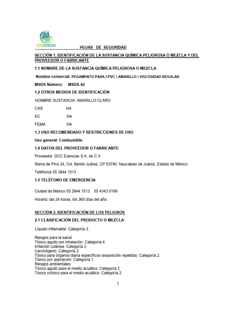 Nombre comercial: PEGAMENTO PARA CPVC ( AMARILLO ) VISCOSIDAD REGULAR.