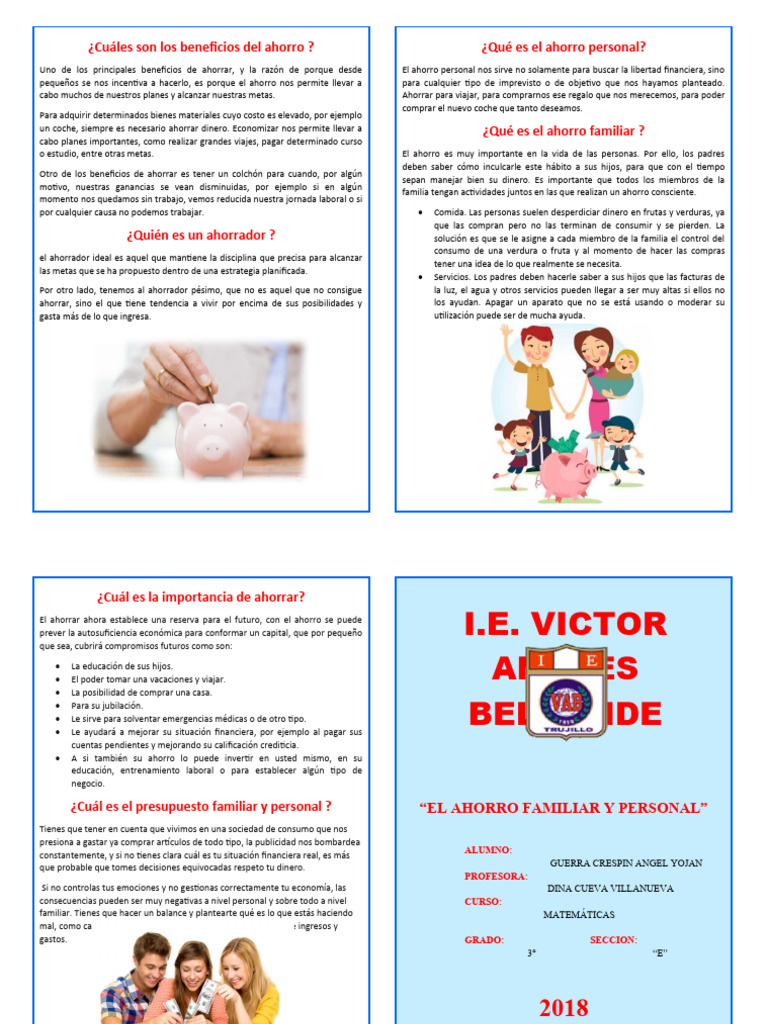 o estudio, entre otras metas. El ahorro es muy importante en la vida de las personas. Por ello, los padres