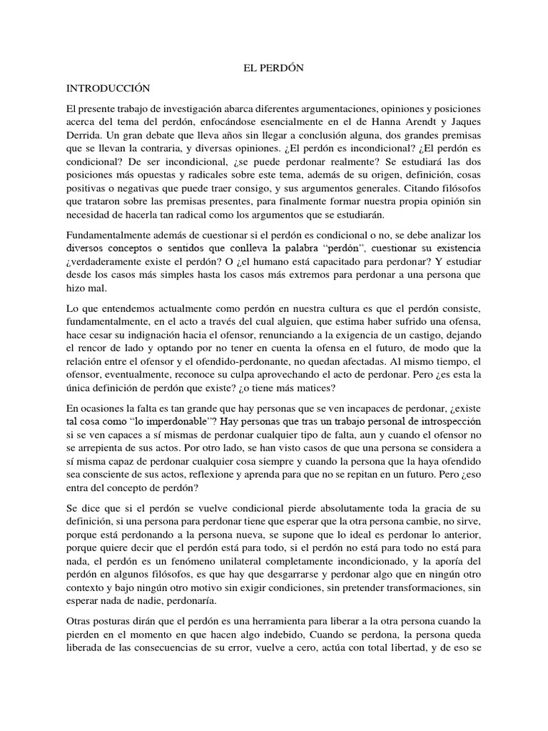 acerca del tema del perdón, enfocándose esencialmente en el de Hanna Arendt y Jaques