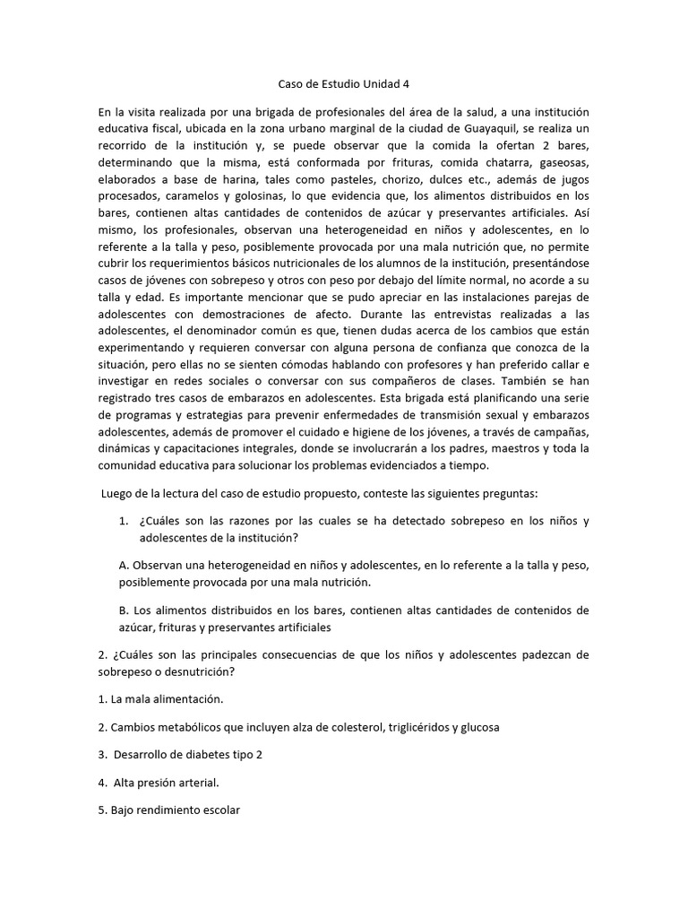Luego de la lectura del caso de estudio propuesto, conteste las siguientes preguntas: