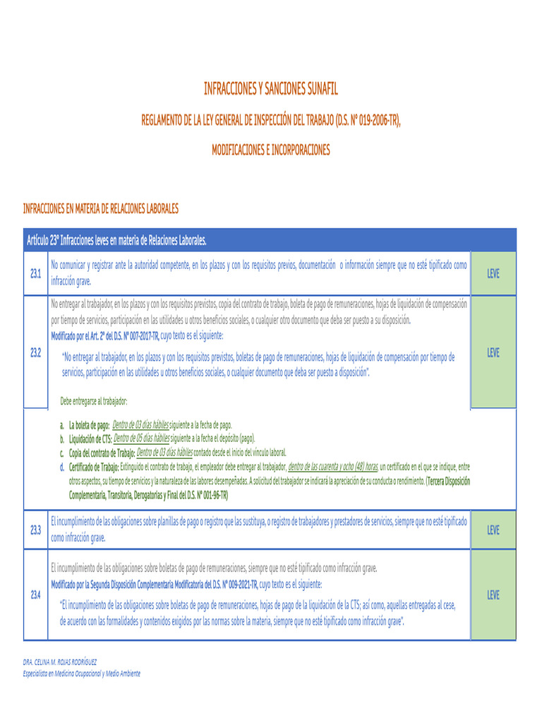 23.5 Modificado por el Art. 2° del D.S. N° 014-2021-TR, cuyo texto es el siguiente: LEVE