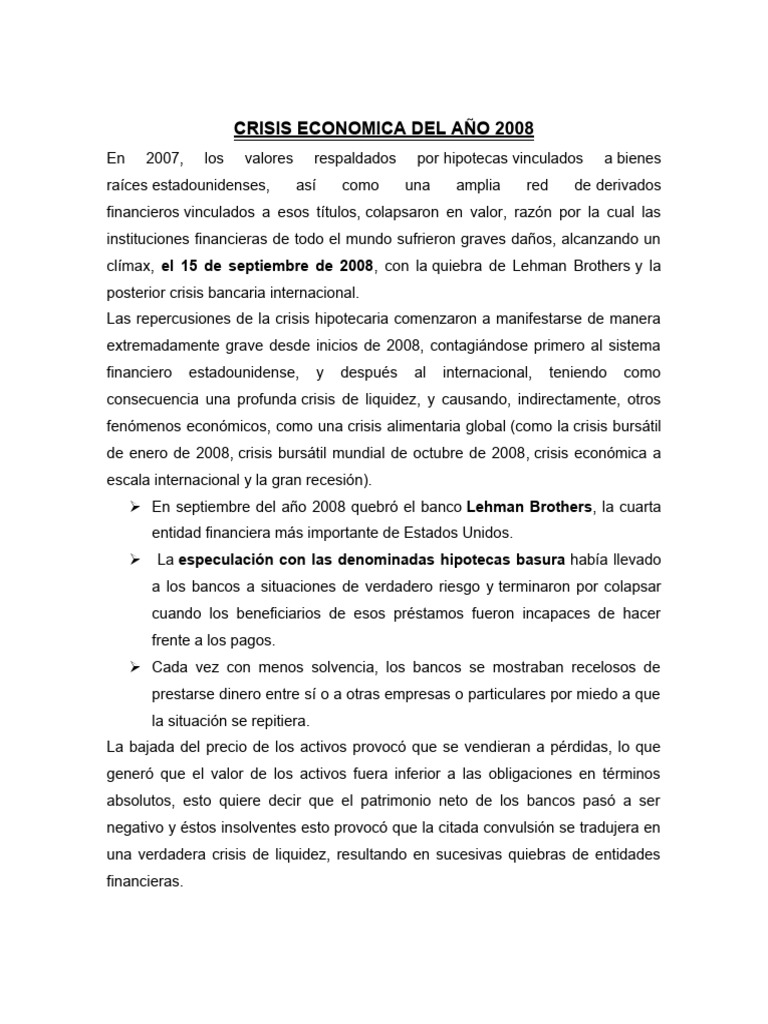 CRISIS ECONOMICA DEL AÑO 2008