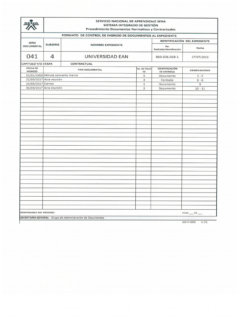 FORMATO DE CONTROL DE INGRESO DE DOCUMENTOS AL EXPEDIENTE