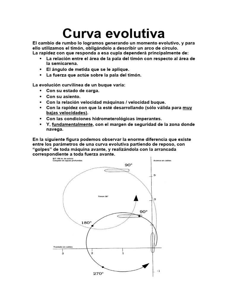 La evolución curvilínea de un buque varía: