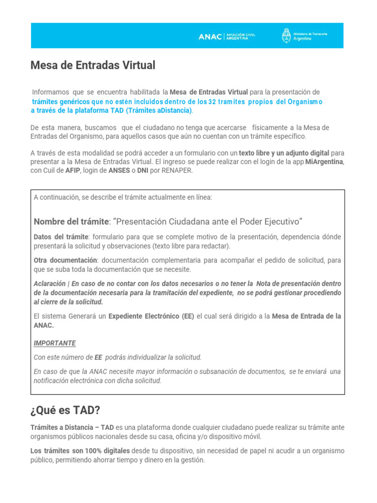 Estado. Desde T AD podés loguearte con tu usuario y realizar los trámites que poseen un nivel bajo de