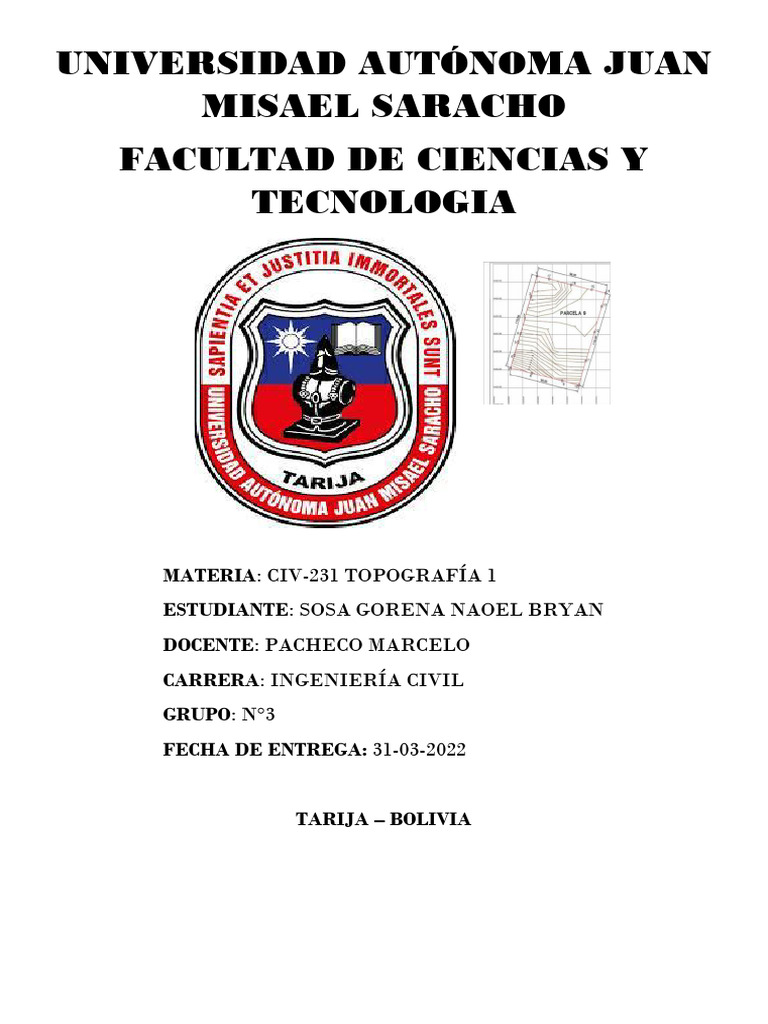 MATERIA: CIV-231 TOPOGRAFÍA 1