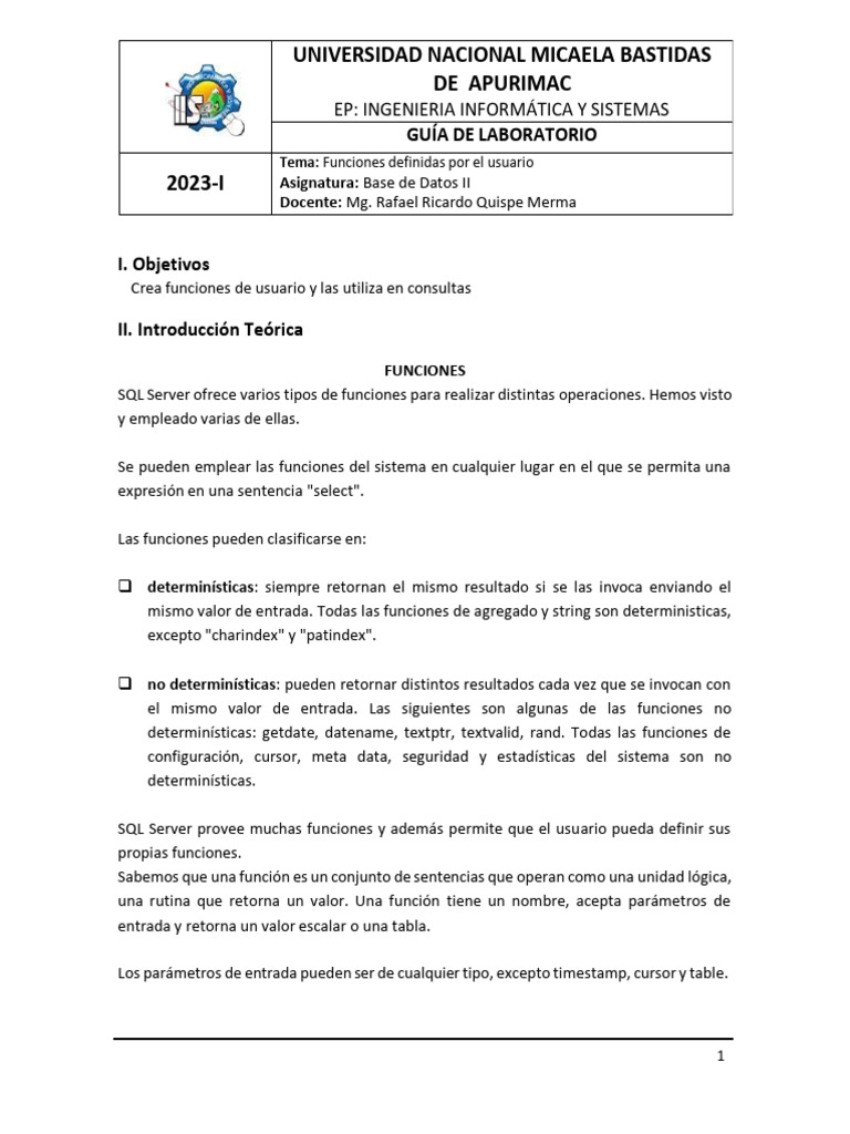 Tema: Funciones definidas por el usuario
